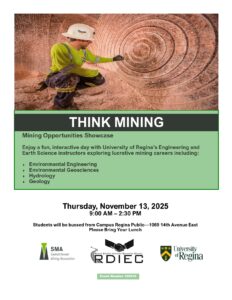 THINK Mining participants are reminded to bring a lunch. Check in at Campus Regina Public at 9 AM – bus departure to the University of Regina at 9:10 AM