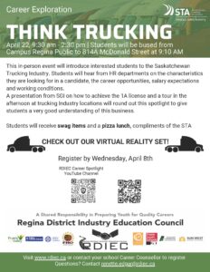 Grade 10 to 12 students will enjoy an interactive day exploring in-demand and high-paying careers within the Sask Trucking Industry.